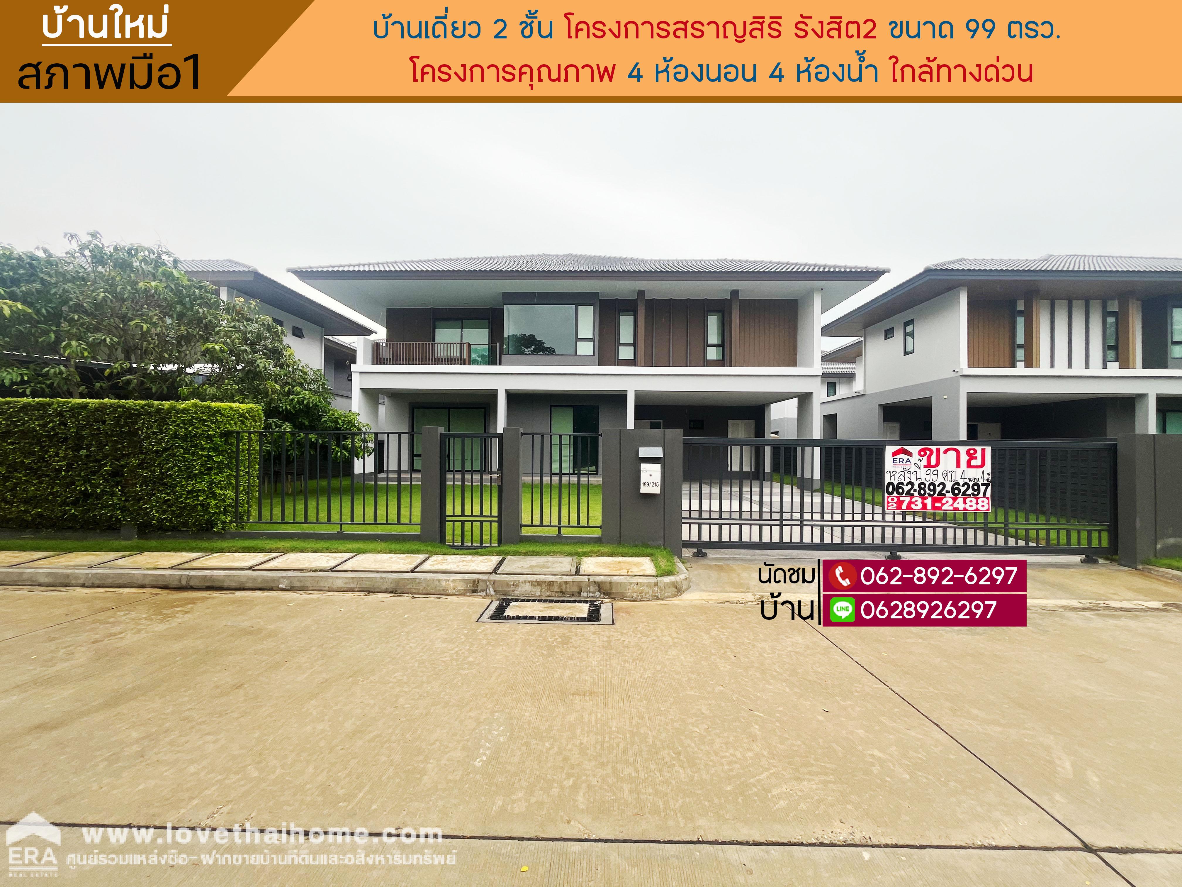 ขายบ้านเดี่ยว2ชั้นโครงการสราญสิริ รังสิต2 ขนาด 99 ตรว. บ้านใหม่ ทำเลศักยภาพ ปทุมธานี ขายราคา 14.5 ล้านบาท ใกล้ทางด่วนขายในราคาสุดคุ้ม โอกาสดีสำหรับผู้มองหาบ้านคุณภาพ ทำเลดี ราคาโดนใจ