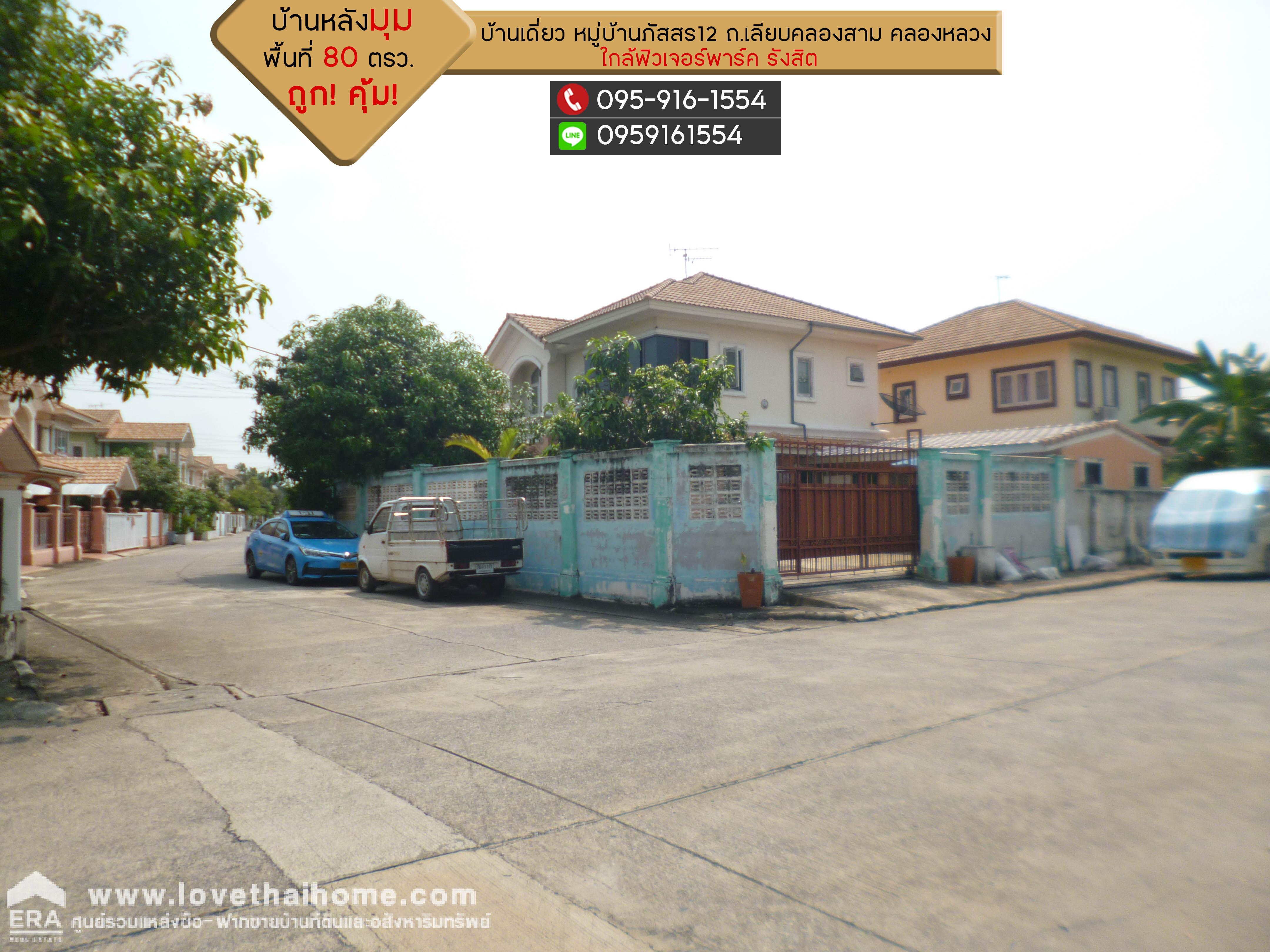 ขายบ้านเดี่ยว2ชั้นหมู่บ้านภัสสร12 ถนนเลียบคลองสาม คลองหลวง บ้านหลังมุม เนื้อที่ 82 ตารางวา ขาย 3.4 ล้านบาท มีพื้นที่ว่างมาก จอดรถได้ 3-4 คัน เหมาะพักอาศัยเก็บสต๊อกสินค้า
