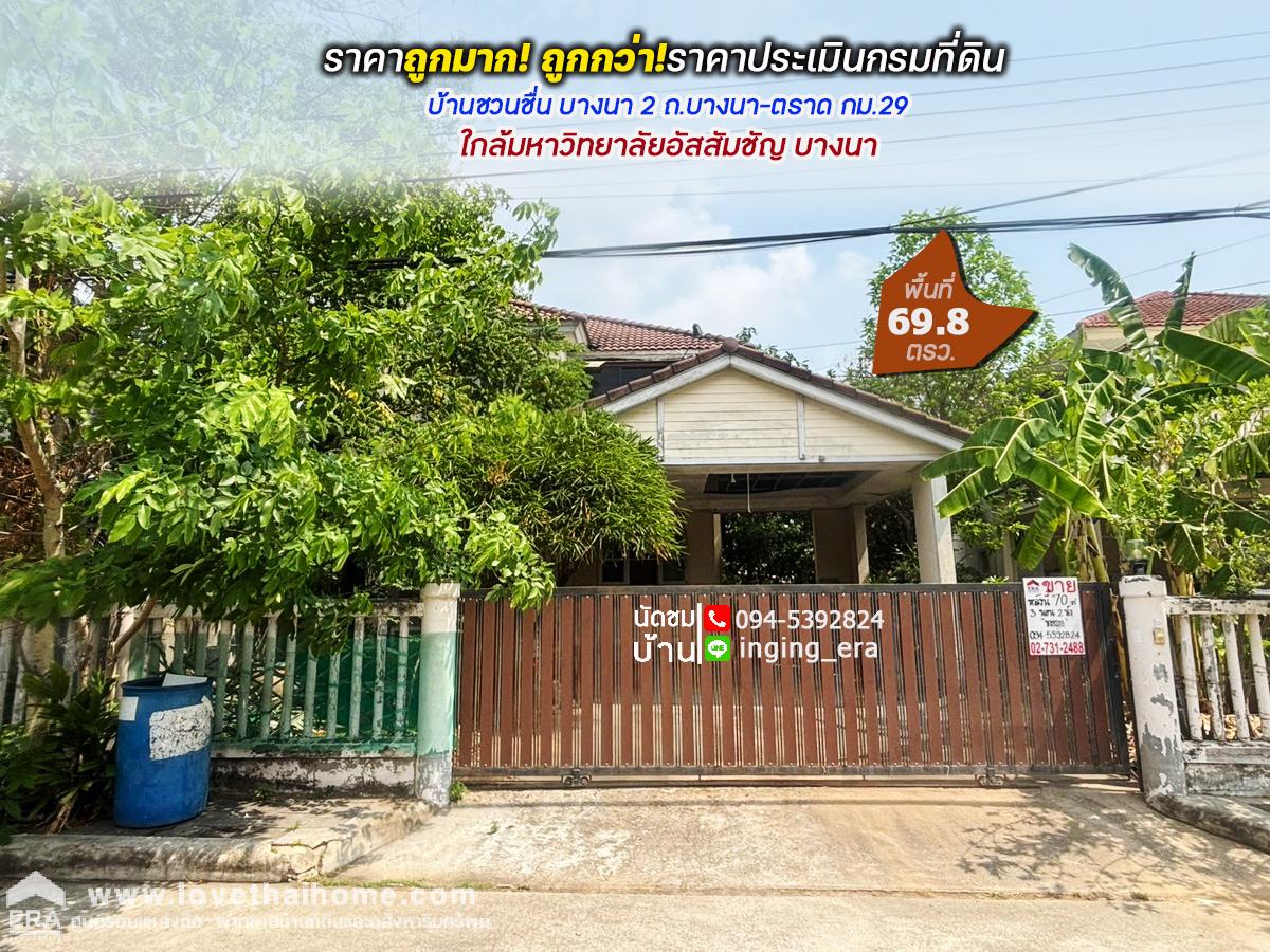 ขายบ้านเดี่ยว หมู่บ้านชวนชื่น บางนา 2 ถนนบางนา-ตราด กม.29 พื้นที่ 69.8 ตรว. ราคาถูกมาก 2.59 ล้าน (ขายถูกกว่าราคาประเมินกรมที่ดิน) ใกล้มหาวิทยาลัยอัสสัมชัญ บางนา